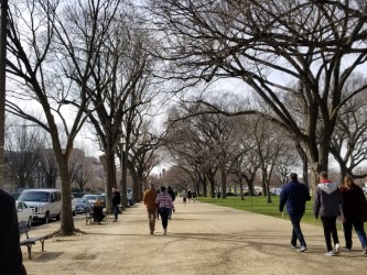 The National Mall, with pedestrians and American elm trees