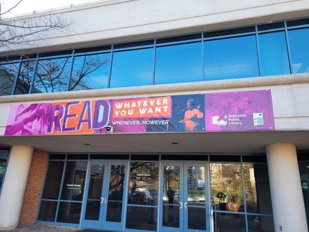 Read Whatever You Want Banner Arlington Central Library